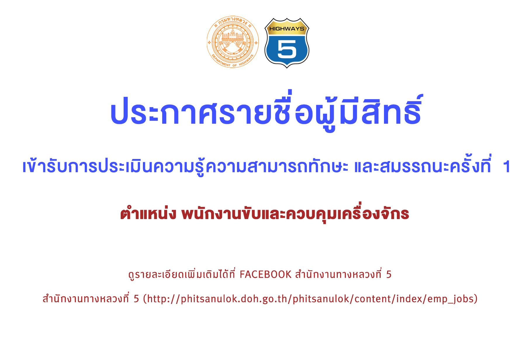 ประกาศรายชื่อผู้มีสิทธิ์เข้ารับการประเมินความรู้ความสามารถทักษะและสมรรถนะ ครั้งที่ 1