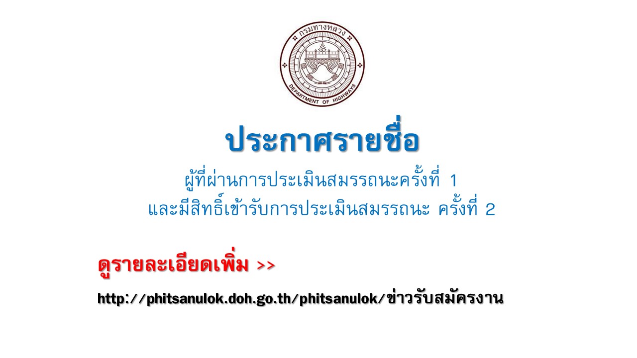 ประกาศรายชื่อผ่านการประเมินสมรรถนะครั้งที่ 1 และมีสิทธิ์เข้ารับการประเมินสมรรถนะ ครั้งที่ 2